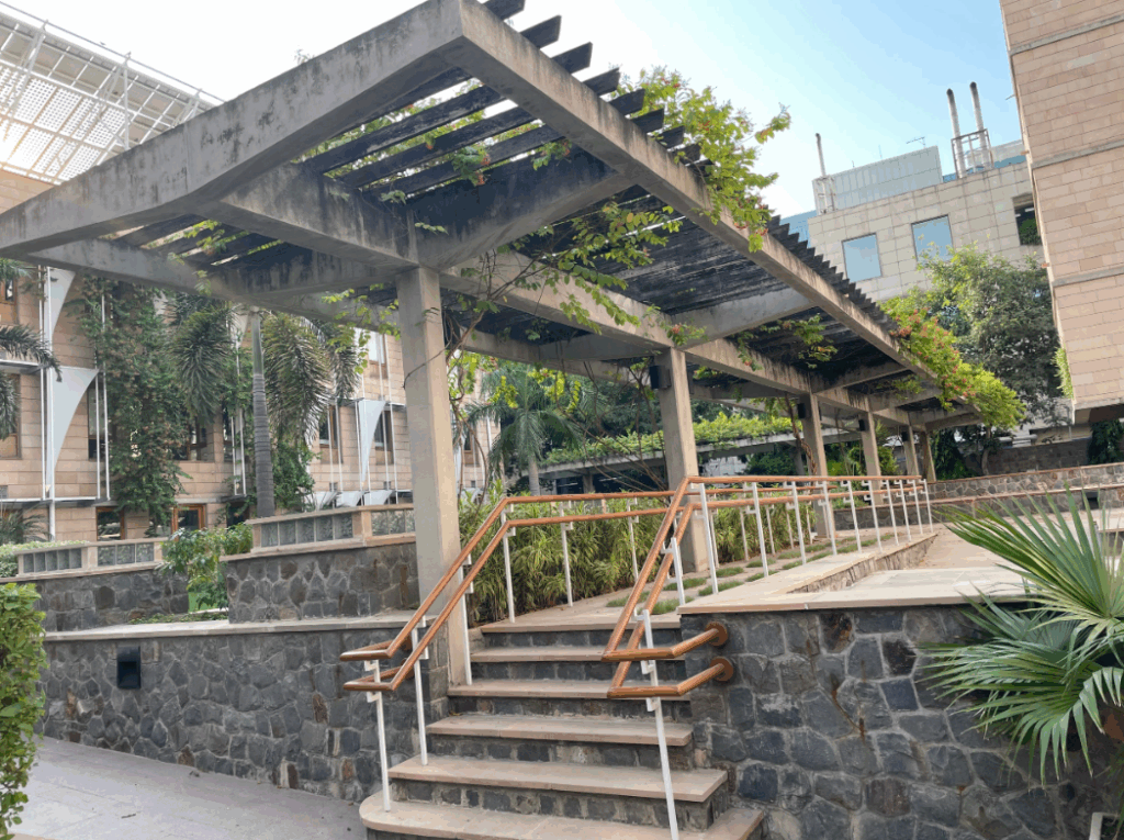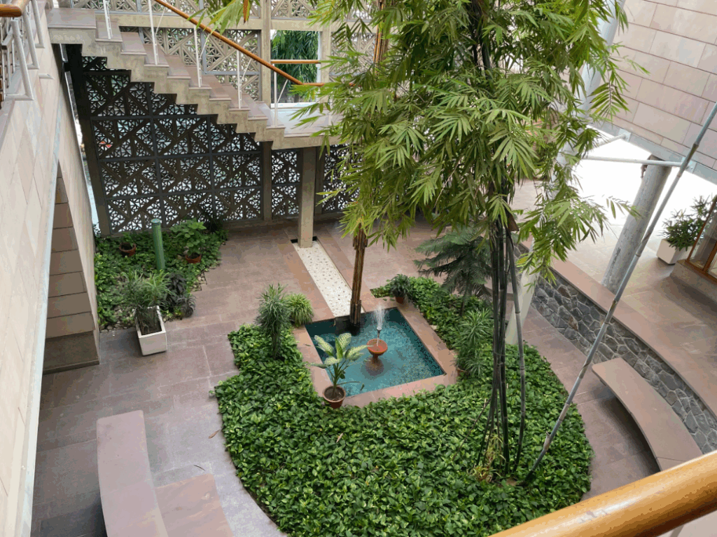 - Their office building holds the distinction of being India’s inaugural green building, having garnered numerous awards. They’ve employed advanced rainwater harvesting methods, ensuring that not a drop of water goes to waste on the building’s surface; instead, all water is meticulously collected and stored in an underground reservoir. The entire facility is powered by solar energy, thanks to a comprehensive array of 360 solar panels, each generating 165 watts. Furthermore, they’ve incorporated window shades that allow ample natural light into the rooms while keeping them cool. The campus itself is a breathtaking sight, with idyllic scenery that left me truly impressed.